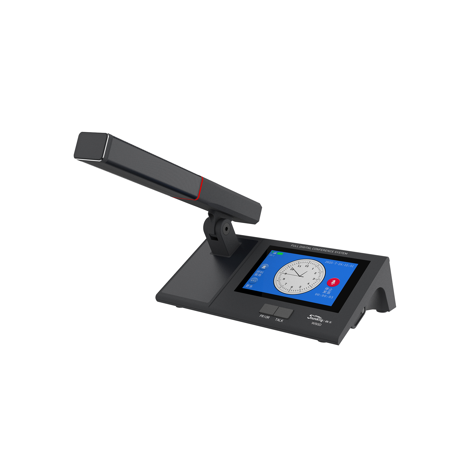 3. 紅綠雙色霧面指示燈設(shè)計(jì),指示發(fā)言狀態(tài)。當(dāng)紅色燈環(huán)亮?xí)r,表示正在發(fā)言,當(dāng)綠色燈環(huán)亮?xí)r,表示申請等待發(fā)言