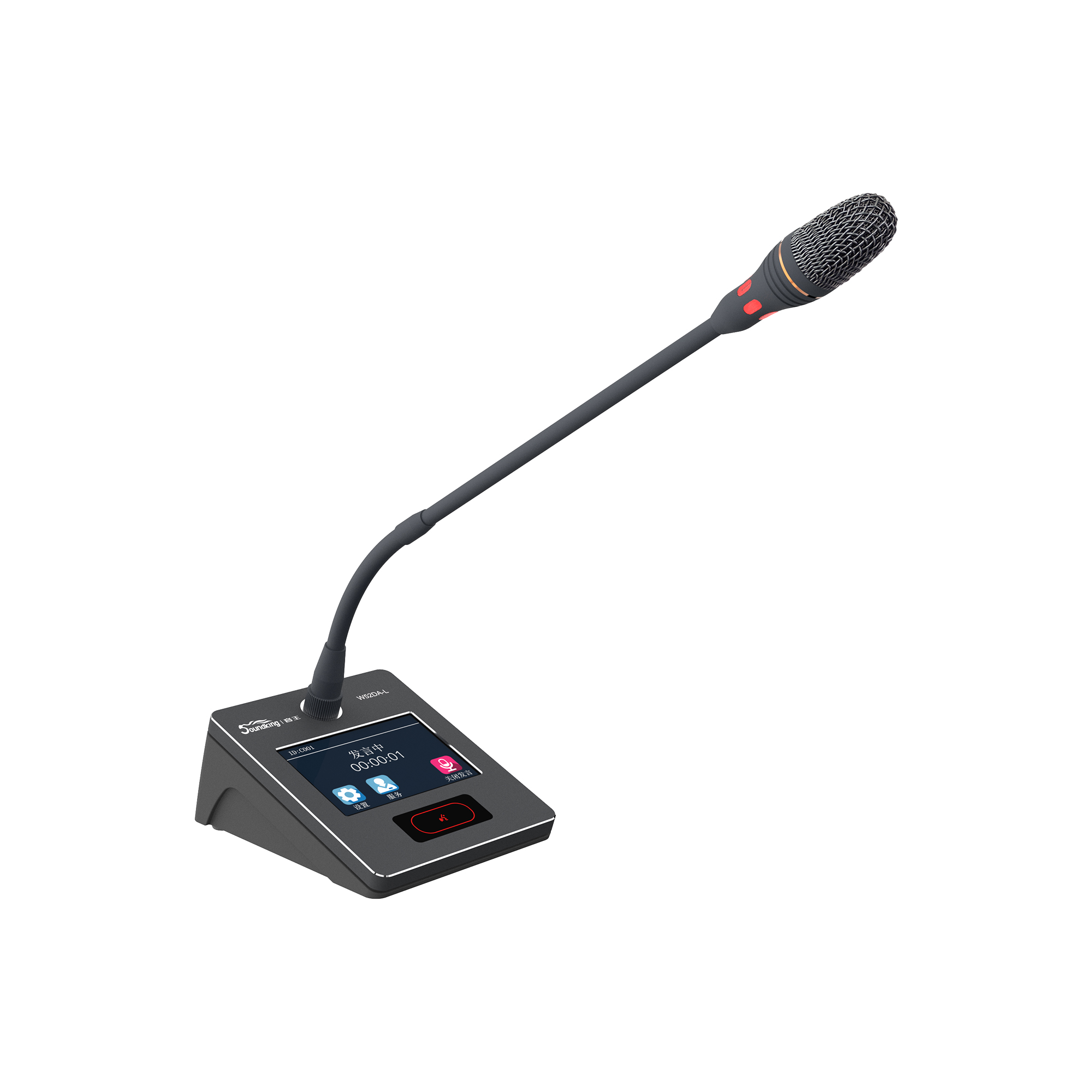 3. 紅綠雙色霧面指示燈設(shè)計(jì),指示發(fā)言狀態(tài)。當(dāng)紅色燈環(huán)亮?xí)r,表示正在發(fā)言,當(dāng)綠色燈環(huán)亮?xí)r,表示申請(qǐng)等待發(fā)言