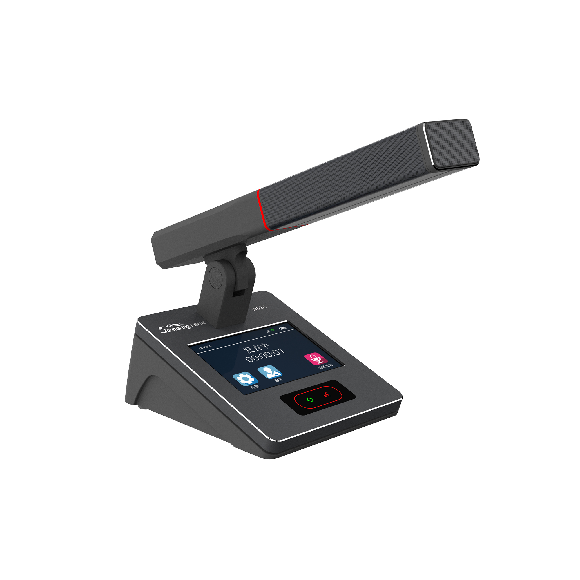 3. 紅綠雙色霧面指示燈設(shè)計(jì),指示發(fā)言狀態(tài)。當(dāng)紅色燈環(huán)亮?xí)r,表示正在發(fā)言,當(dāng)綠色燈環(huán)亮?xí)r,表示申請等待發(fā)言
